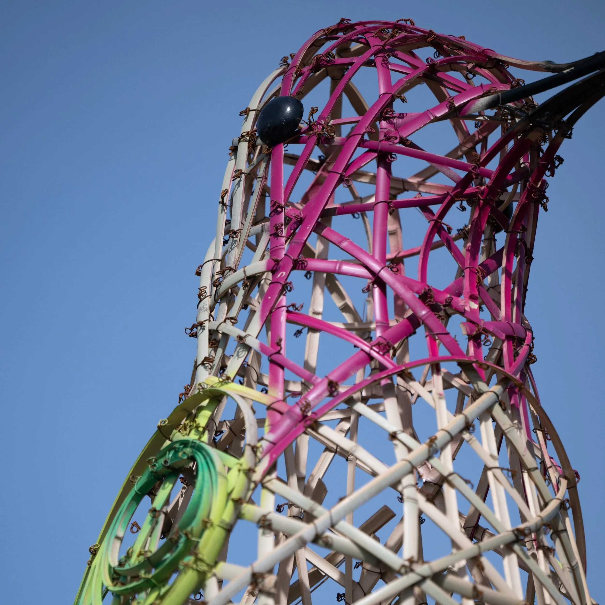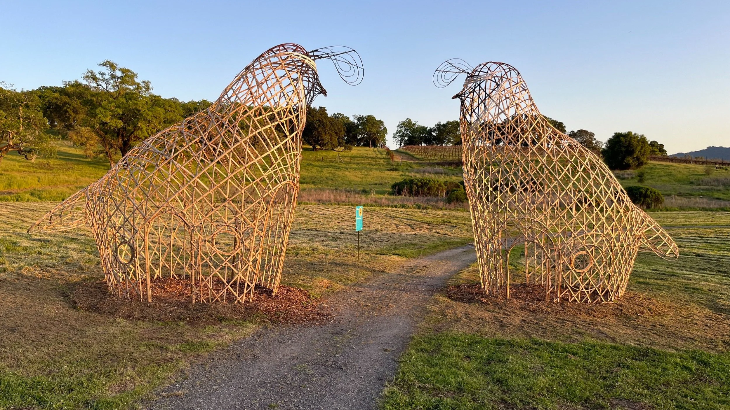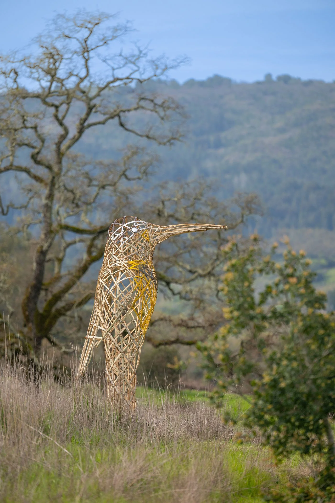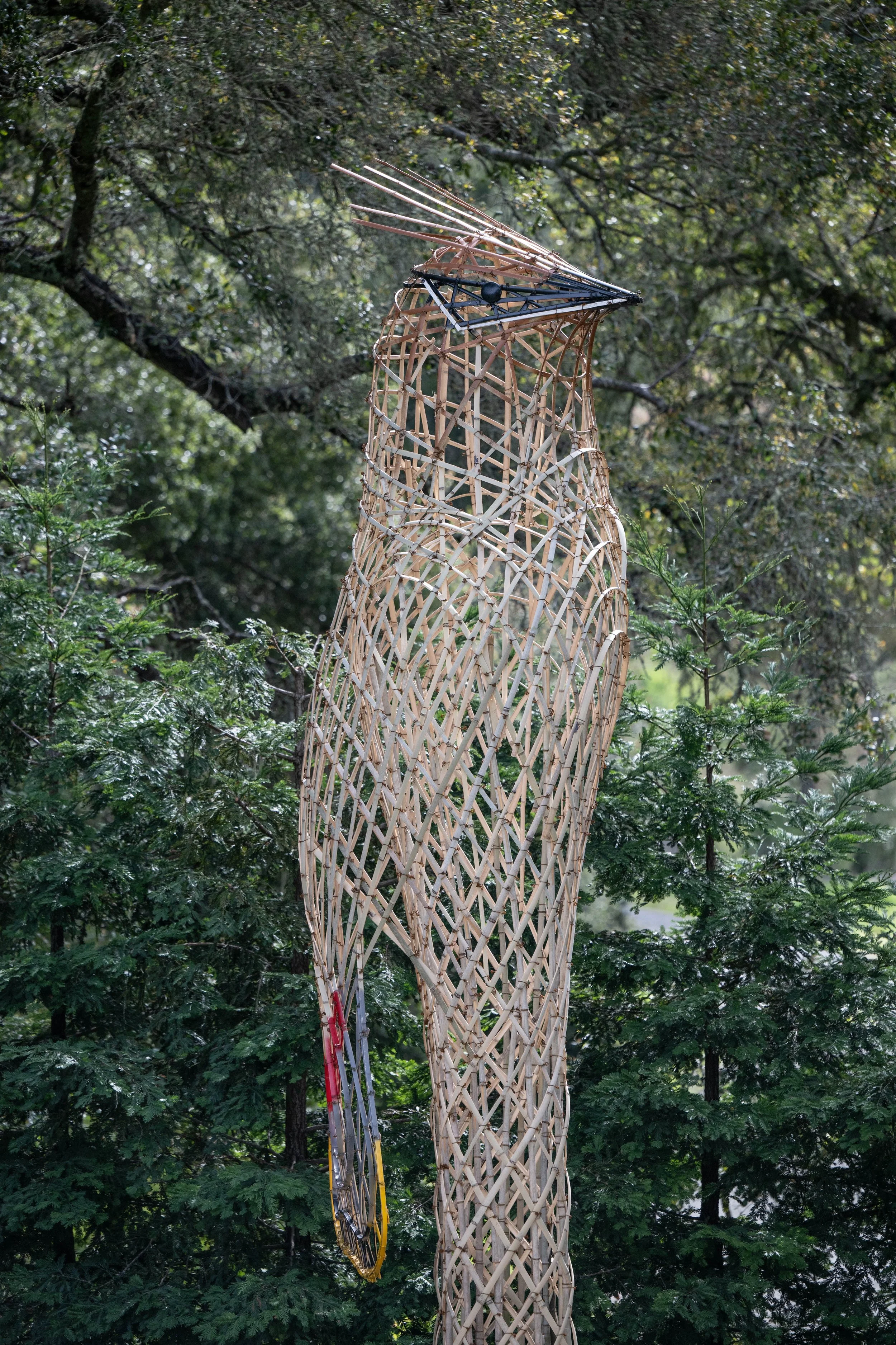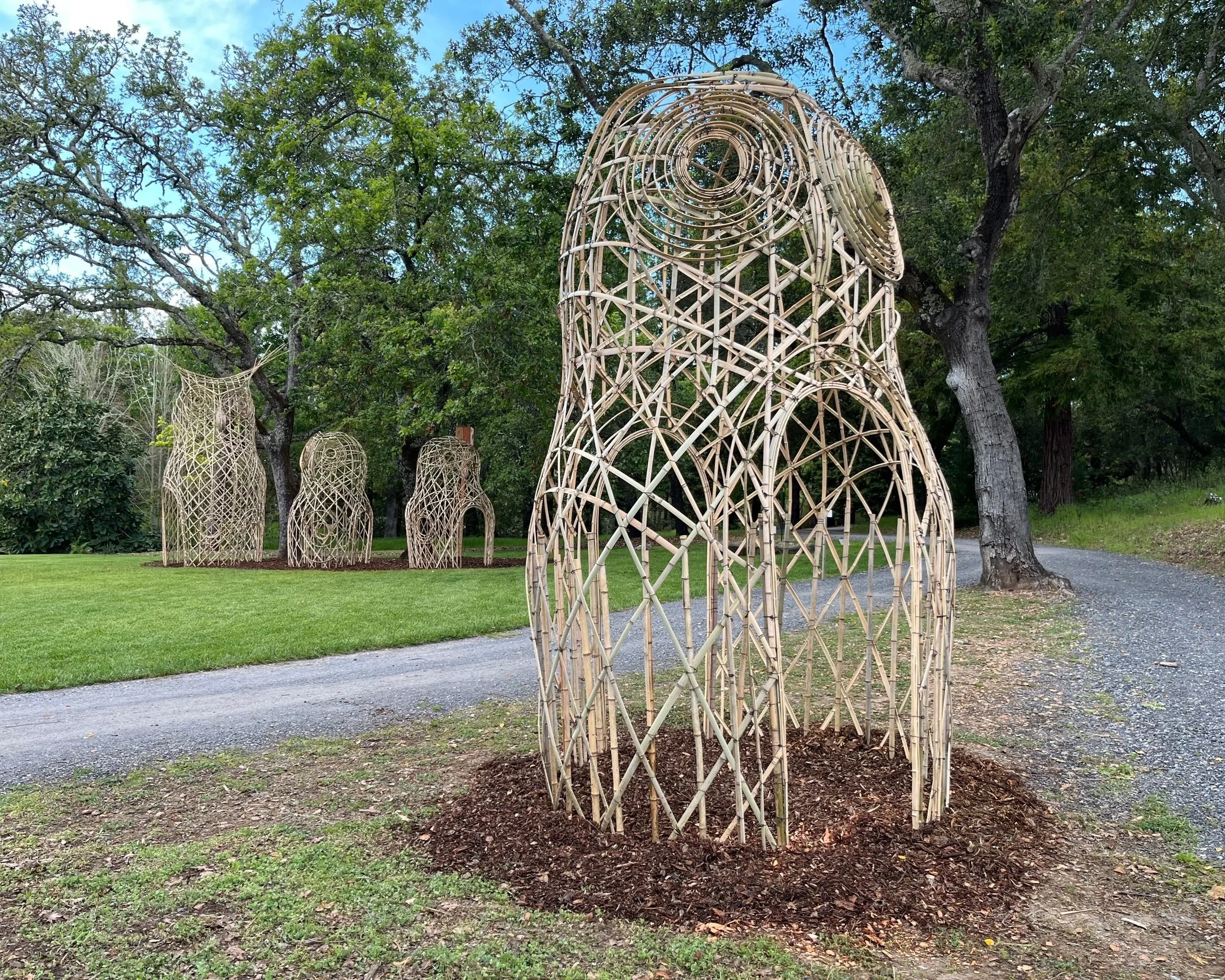 The colossal sculptures up to 20 feet tall are made entirely from natural materials by Boston-based artist duo The Myth Makers, Donna Dodson and Andy Moerlein to highlight the beauty and diversity of California’s native birds and the ecosystems that support them. The bamboo sculptures all reflect the species that make their home in the grasslands, forests, and vineyards of the Garden. Thank you to the Press Democrat and to Northern California Public media for the press previews!