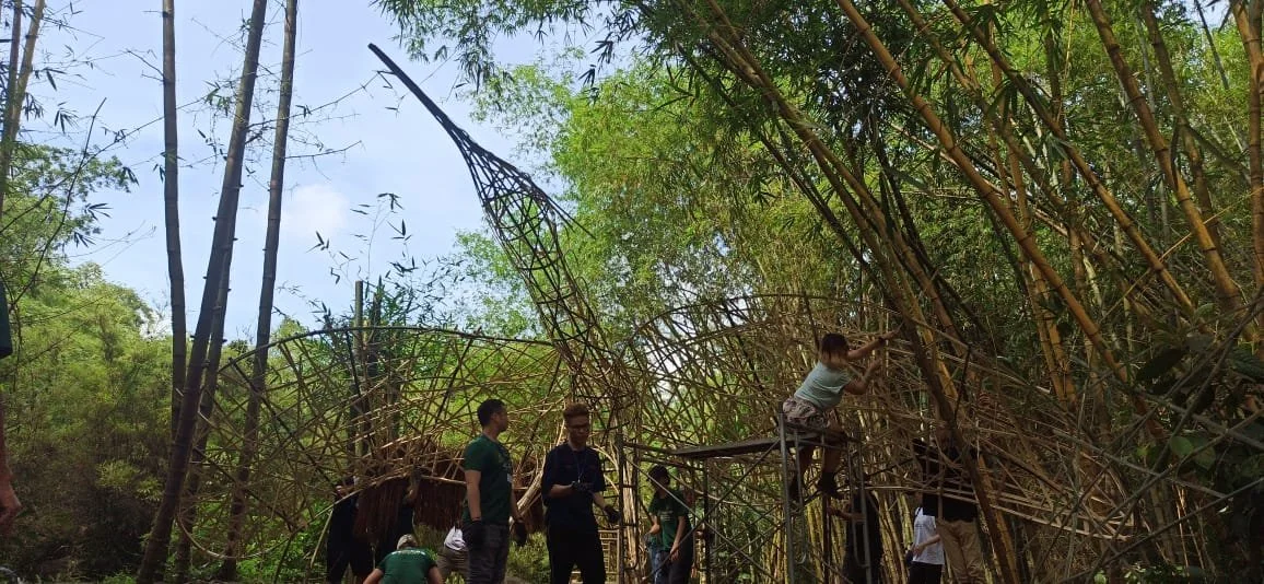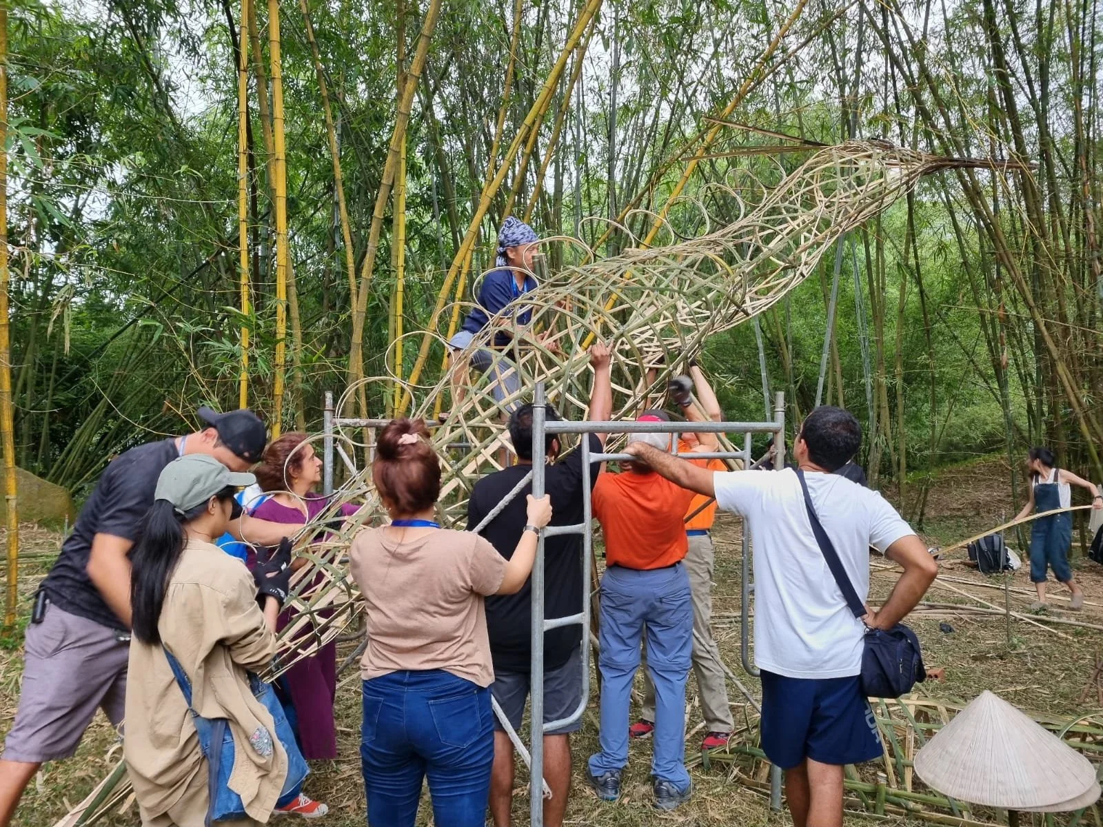 It was our pleasure to collaborate with an international team of artists to realize this project. Thank you to everyone who made it possible: Susanne Lucas, Martin Mortera Abdi, Peter Van Lengen, Nguyen Manh Tuan, My Hanh Diep, Edgar Banasan, Michel Abadie and so many more! For more information, check out this short film by Santosh Oinam : the 4th World Bamboo Workshop, 2022.